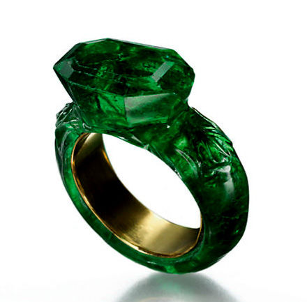 2012/05/22 Christie’s Geneva Lily Safra Collection 番外編 何と全体がエメラルドで出来たエメラルドリングです。 内側にイエローゴールドが張られています。 全体に均一に色がのっている大きな原石から削り出したと思われます。…more